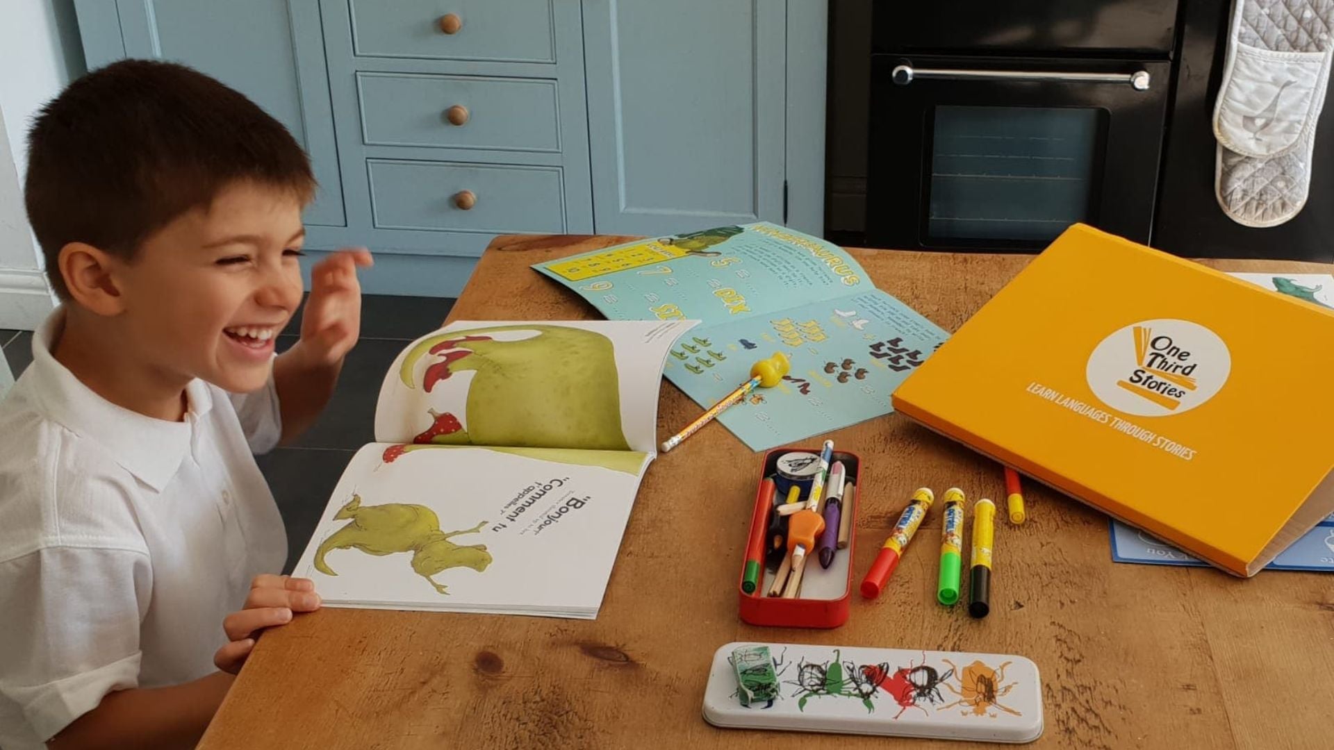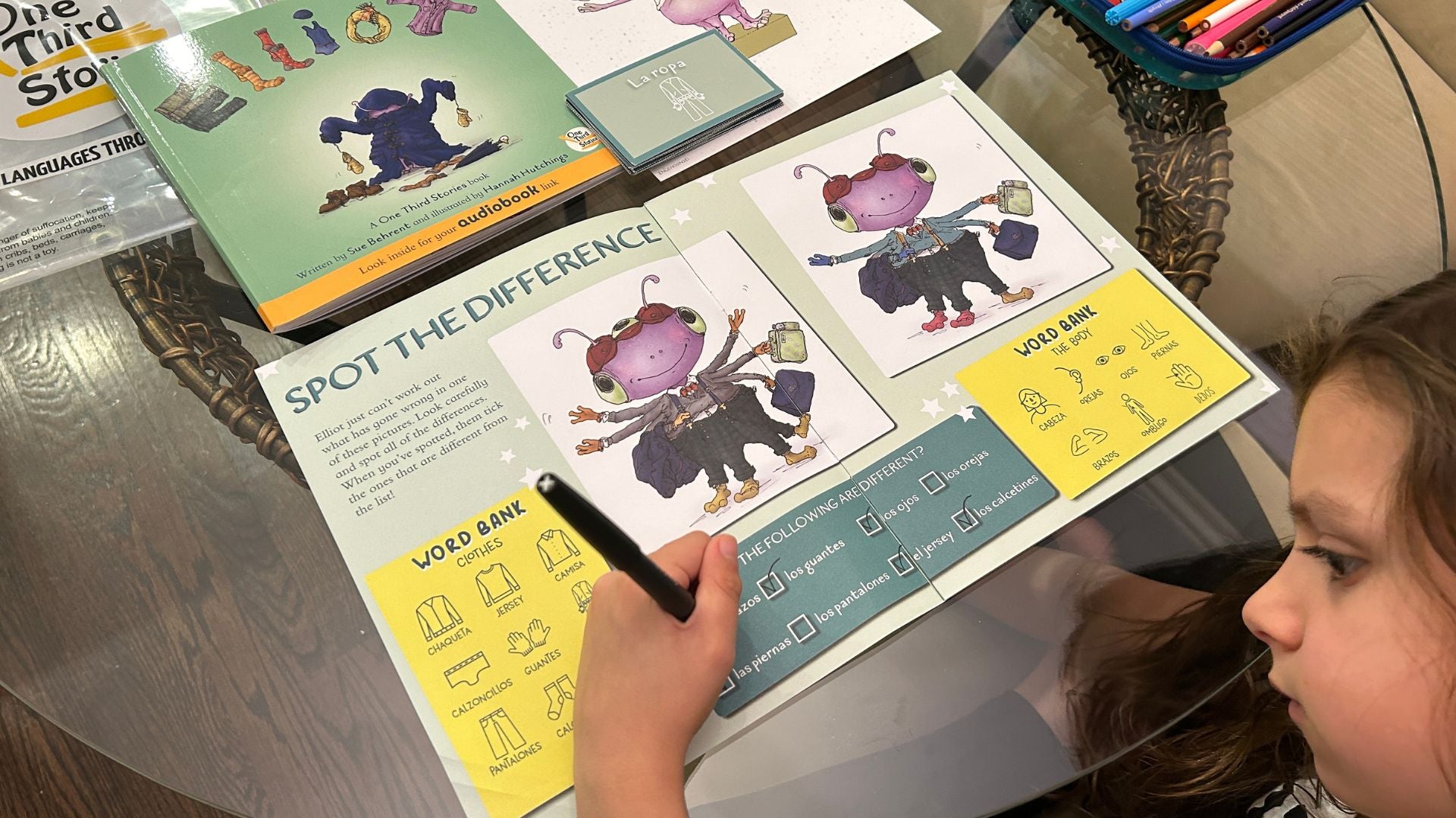 One Third Stories introduces children 5-10 to new languages! Each Story Box includes a story book that begins in English and gradually introduces a new language, an audiobook narrated by a native speaker, an activity book, flashcards, and hands-on activities. No prior language experience required! Find out why families across the country love our story boxes!