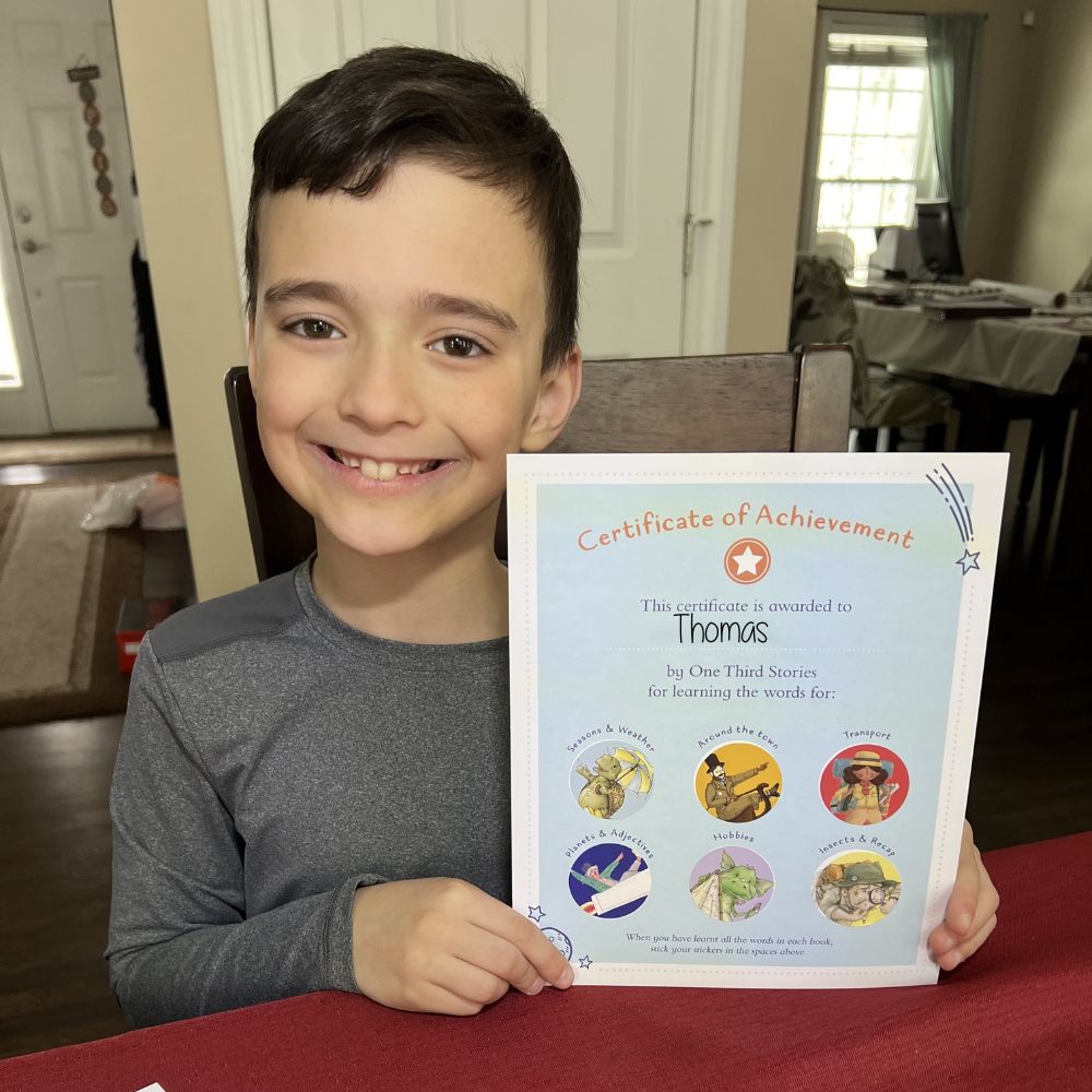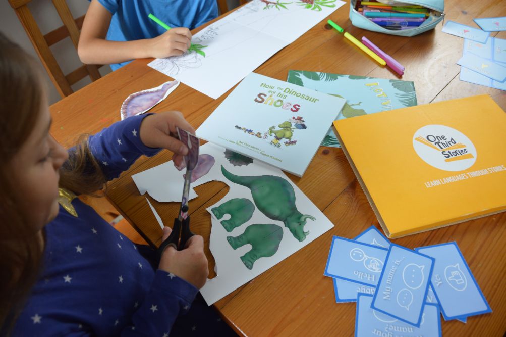 One Third Stories introduces children, ages 5-10, to new languages through story books and more! Our story boxes include a story book that begins in English and gradually introduces a new language, an audiobook narrated by a native speaker, an activity book, flashcards, and hands-on activities. No prior language experience required! Find out why so many families across the country love our story boxes!